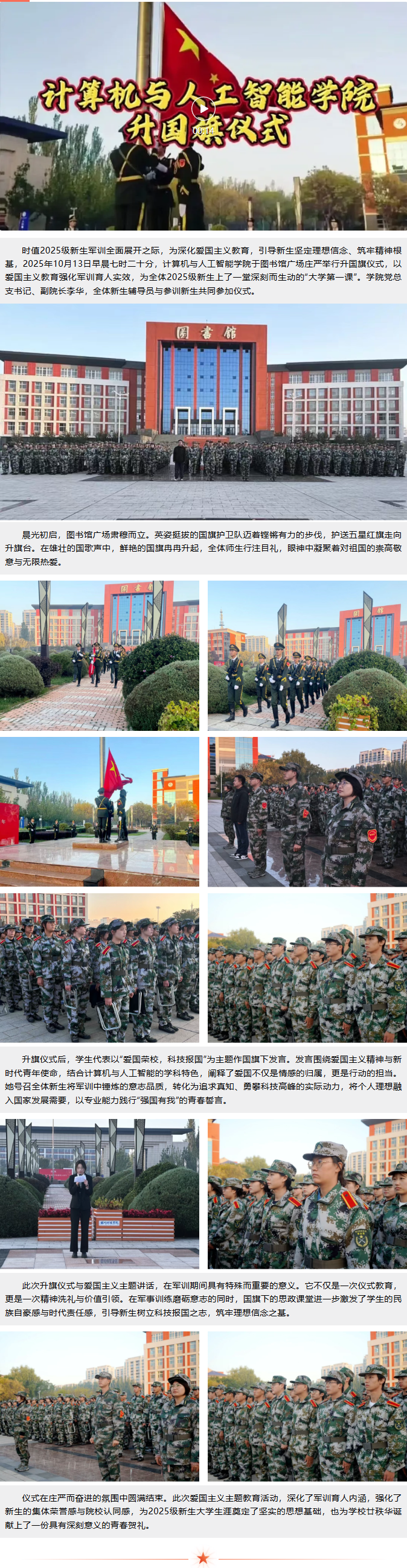 计算机与人工智能学院举行2025级新生爱国主义主题升国旗仪式