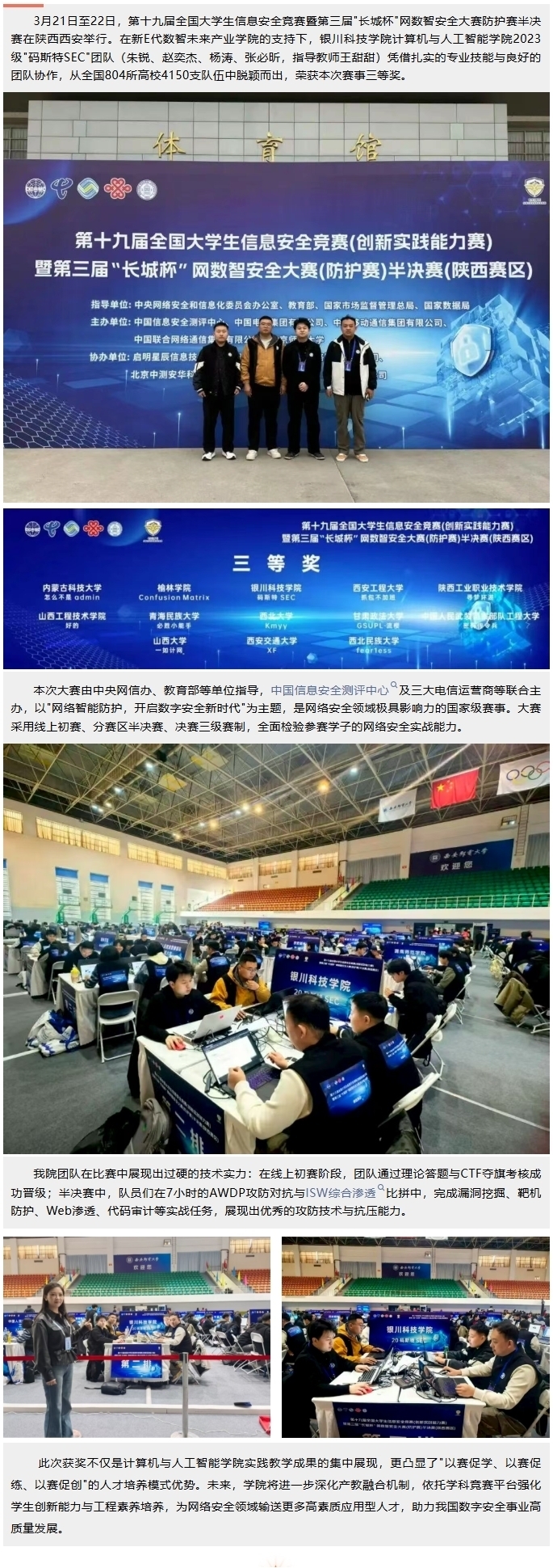 新E代数智未来产业学院助力银川科技学院学生在第十九届全国大学生信息安全竞赛暨第三届“长城杯”网数智安全大赛中斩获佳绩